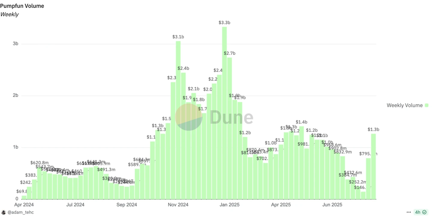 除了数据量庞大,链上交易还呈现出明显的流量分布不均特征。Pumpfun周交易量最低到最高相差近30倍。