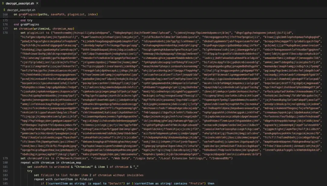 该osascript脚本被设计用于窃取用户KeyChain中存储的敏感数据。KeyChain是操作系统保存密码、密钥及其他凭据的安全仓库,一旦被读取,黑客就可能获取到加密钱包的助记词、私钥等关键信息。