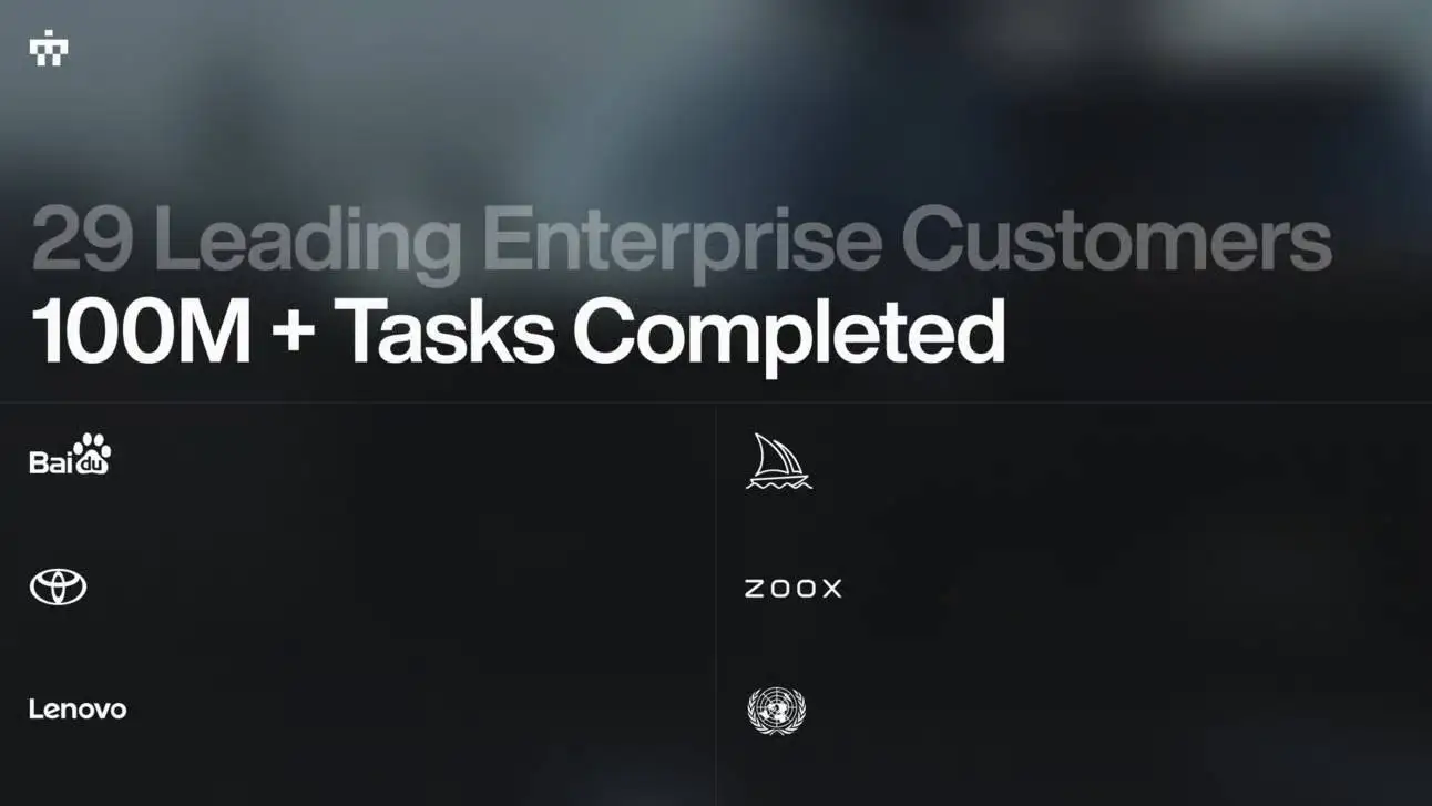 Sapien的企业客户阵容同样令人瞩目。平台已服务29家企业客户,包括丰田、阿里巴巴、百度、Midjourney和联合国等知名机构,覆盖自动驾驶、电商、AI绘图等多个领域。