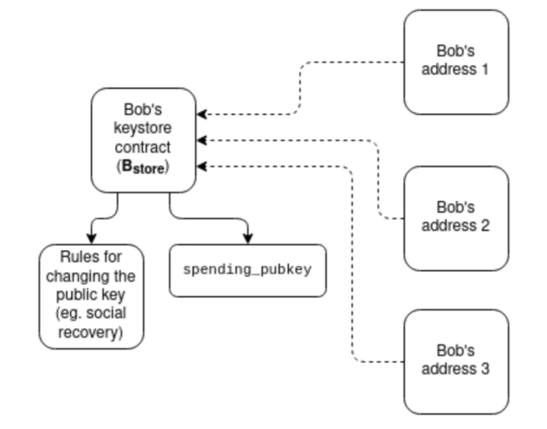 Vitalik Buterin提出的解决方案基于验证逻辑与资产持有分离的创新架构。通过keystore合约,可以将验证逻辑集中管理,同时与各个L2上的资产地址进行关联。这种设计大幅降低了处理多个地址的复杂性,同时保持了高水平的安全保障。