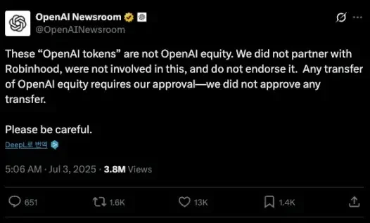 私募公司对控制权的坚持构成了另一大障碍。典型案例是2025年6月,当Robinhood宣布为欧盟客户提供OpenAI代币化投资服务时,OpenAI立即发表声明否认与该平台有任何合作,并强调这些代币不代表公司股权。这一冲突揭示了私募公司对股东结构和投资者管理的严格控制意愿,他们不愿看到代币化削弱这种控制权。