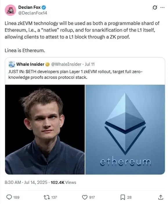 从技术实现来看,原生Rollup为以太坊带来了全新的分片范式。与ETH2.0同构分片方案不同,原生Rollup支持构建异构的Rollup系统。Linea项目负责人Declan Fox指出,这实际上是对分片方案的升级——不再局限于64个结构相同的分片链,而是可以创建高度可定制化的Rollup,满足不同应用场景的特定需求。