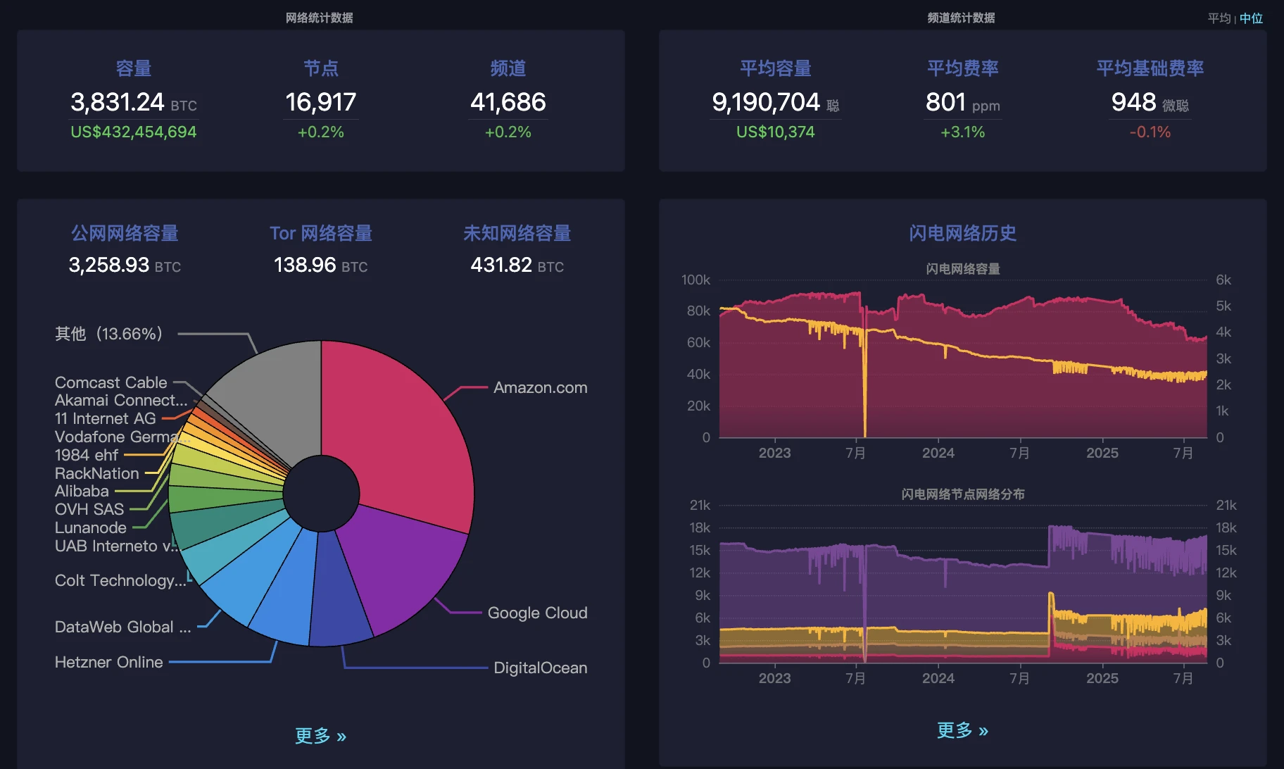 这一举措显著拓展了支付场景,推动生态裂变。闪电网络已稳定运行10年,拥有超过1.6万个节点和4.1万个活跃通道,总锁仓量保持在约4,000 BTC。