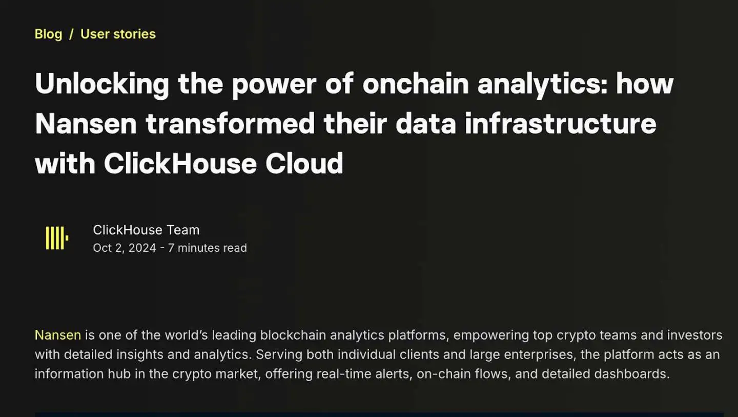 为应对数据供给侧的挑战,部分平台已转向流式与实时架构。The Graph借助Substreams与Firehose将数据延迟压缩至近实时。Nansen通过引入ClickHouse等流式处理技术,在Smart Alerts与实时仪表盘上实现了数十倍性能提升。Pangea则通过汇聚社区节点资源,以不到100ms的延迟为做市商、量化分析师等B端用户提供实时流式数据。