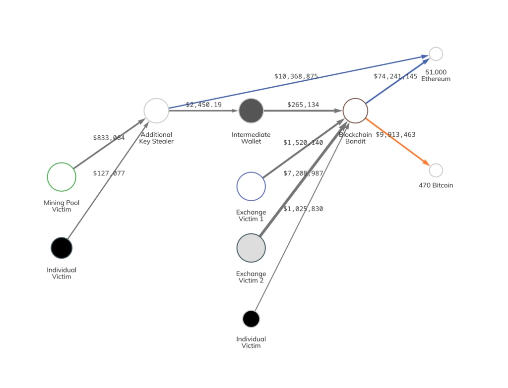 历史上曾发生过因伪随机算法导致的安全事件。某些钱包在生成助记词时使用了熵值不足的伪随机算法,致使私钥容易被遍历破解。例如,2015年黑客组织Blockchain Bandit就利用有缺陷的随机数生成器和程序漏洞,系统性地扫描出超过70万个安全性薄弱的钱包地址,并从中盗走了5万多枚ETH。