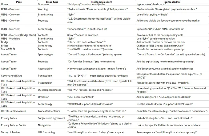 此外,网站所谓的“更新日志”内容空洞、维护记录极其敷衍,几乎看不到实质性的项目进展或技术迭代。整体来看,WLFI 的线上门面更像是一场临时搭建的表演,而非一个严肃的区块链项目应具备的专业形象。