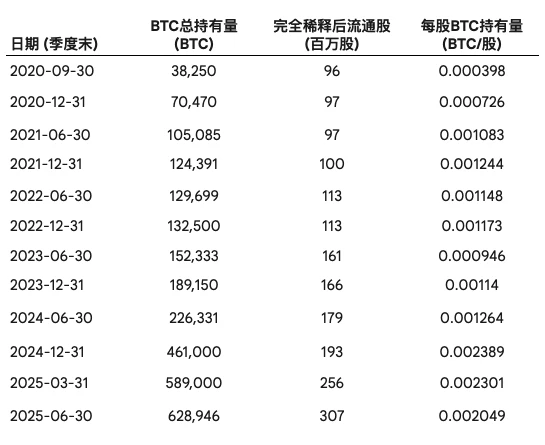 以MicroStrategy为例,在评估“币股”时,应重点监控以下关键指标,而非仅仅关注公司宣布的BTC总持有量: