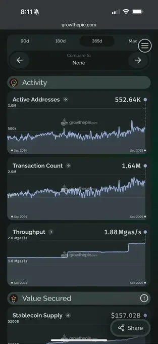 数据层面也提供了有力支撑:稳定币总市值的60%以上仍锚定在以太坊上,链上活跃度指标持续向好,甚至获得美国财政部长的高度关注。这些事实都与"网络衰退论"形成了鲜明对比。正如风险投资主管Tom Dunleavy所指出的,L1高收入反而可能成为生态增长的绊脚石;而交易员Ryan Berckmans则用实际数据反问:在这些积极指标面前,何来衰退之说?