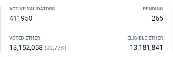 截至合并前,信标链已吸引超1300万ETH质押,验证者数量突破41万,为后续合并积累了充足的网络安全基础。