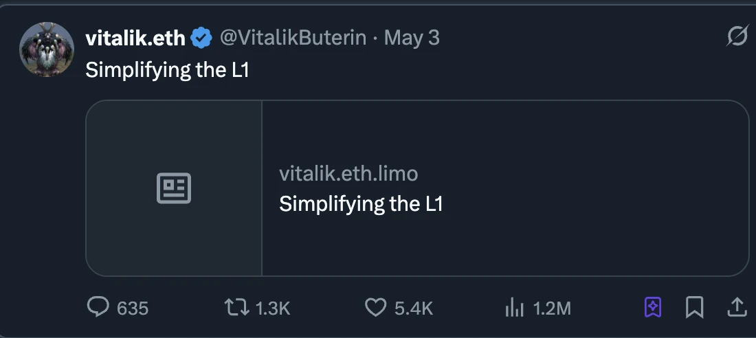 这种架构转型将使以太坊能够支持"Gigagas L1"的愿景,目标实现约10,000TPS的性能,同时将证明成本降低约100倍。最终,以太坊将进化成为一个高效、安全、可验证的信任基础设施,为下一代互联网应用提供坚实的基础支持。