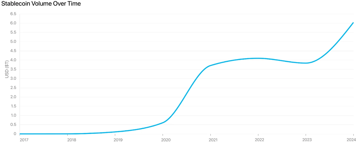 更高的ETH价值进一步增强了网络安全性,吸引更多机构和服务加入,反过来又促进了稳定币的大规模采用。Layer2解决方案的扩展为这一飞轮注入新动力,通过降低交易成本、提升交易速度,开辟了更多ETH抵押应用场景,强化了其作为数字美元经济储备资产的地位。稳定币已经实现每年数万亿美元的结算规模,天然具备全球运作特性,并在创新方面保持更高灵活性。