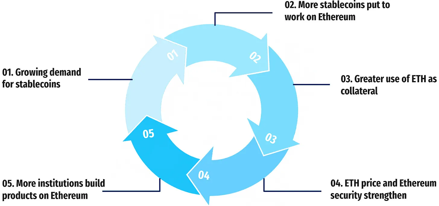 飞轮效应:稳定币增长→ETH抵押需求→价值提升的正循环