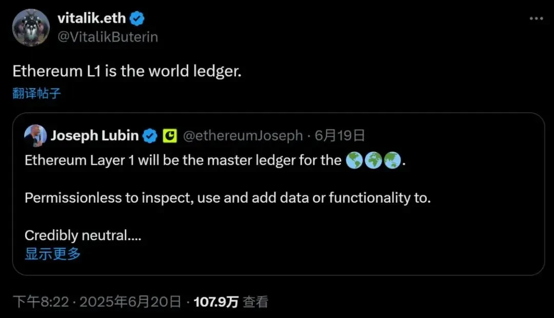 以太坊并未放弃成为“世界计算机”的愿景,但L1+L2的分层架构正推动其优先成为全球可信的“世界账本”,为链上金融帝国奠定坚实基础。