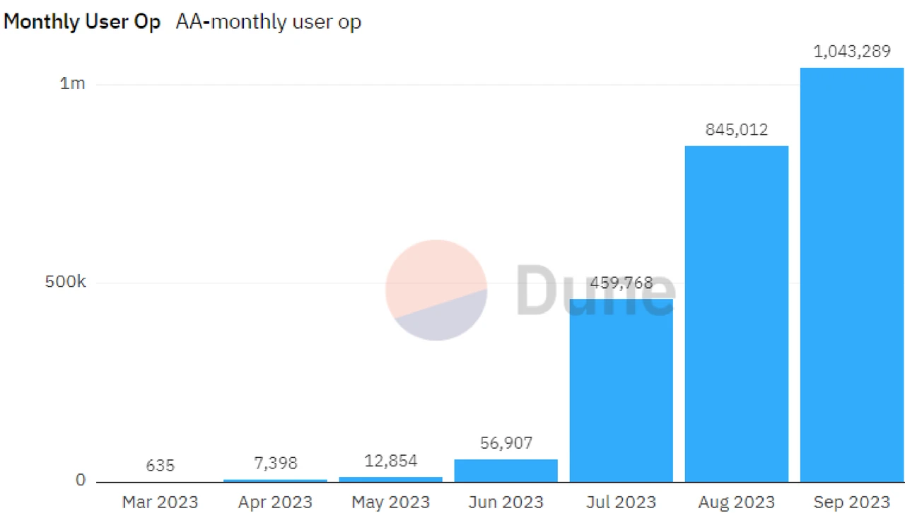 Web3用户规模约为3亿,仅占全球人口的4%,相比60亿网民仍有巨大增长空间。要实现用户量从3亿向10亿的跨越,降低参与门槛和提升账户功能自定义能力成为关键前提。ERC4337凭借相对成熟的技术框架和较低的部署风险,获得了以太坊基金会及核心开发者的广泛认可。自Entry Point入口合约在主网上线以来,账户抽象用户数量呈现爆发式增长态势,为生态扩张奠定了技术基础。