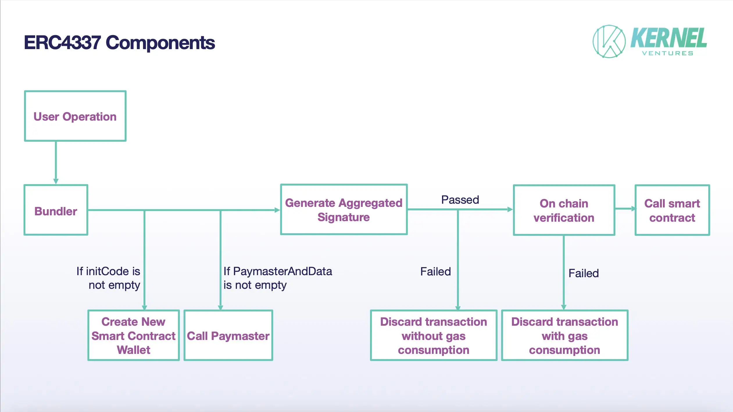 ERC4337通过三个核心组件实现账户抽象:Bundler、Entry Point合约和Paymaster代付合约,三者协同运作,构建出全新的交易处理机制。